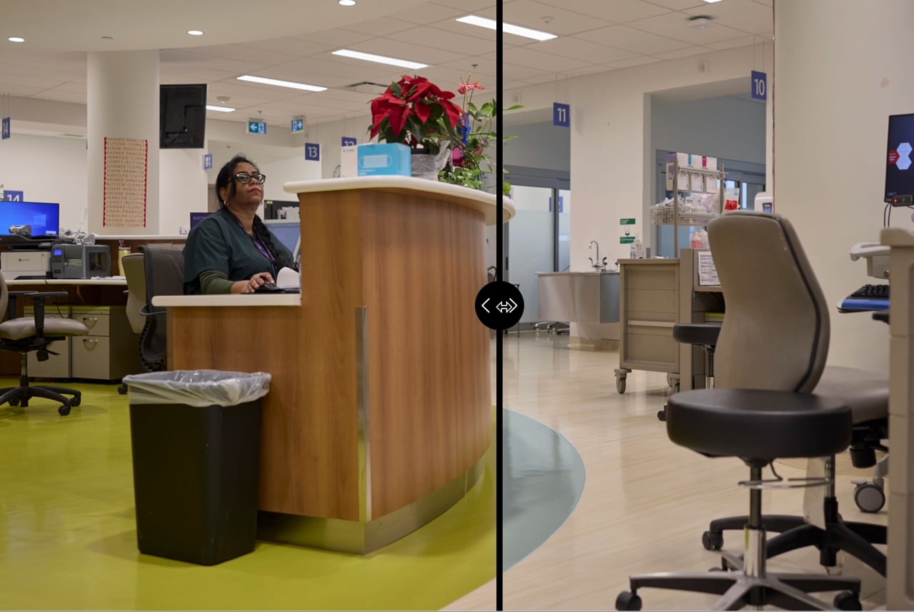 Patient in the BG while Physician reviews a file